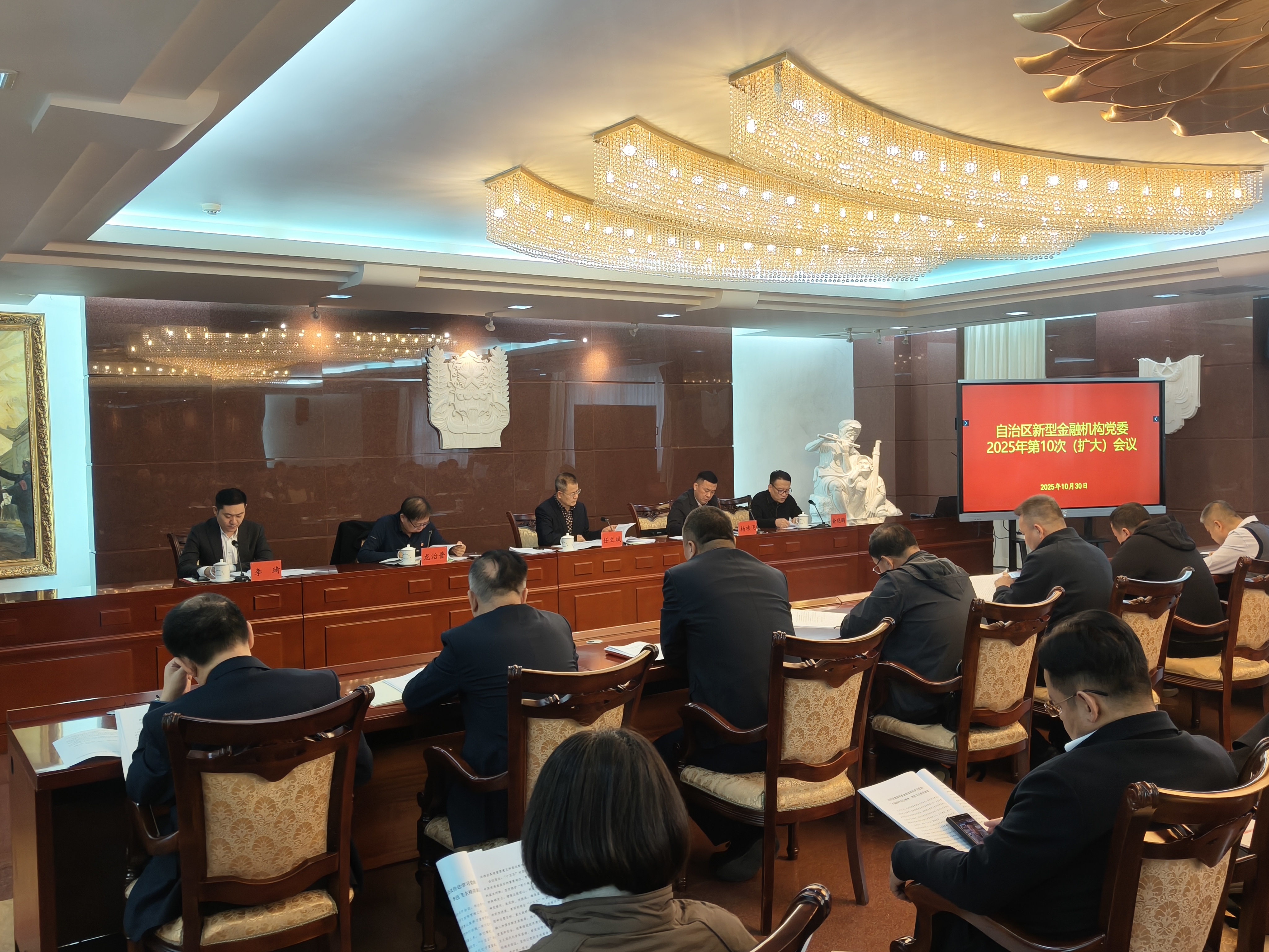 10月30日,自治区新型金融机构党委召开2025年第10次(扩大)会议暨学习宣传贯彻党的二十届四中全会精神部署会。自治区党委金融办、金融工委一级巡视员,自治区新型金融机构党委书记任文斌主持会议并讲话,自治区新型金融机构党委委员、各基层党组织书记、党务工作者参加会议。