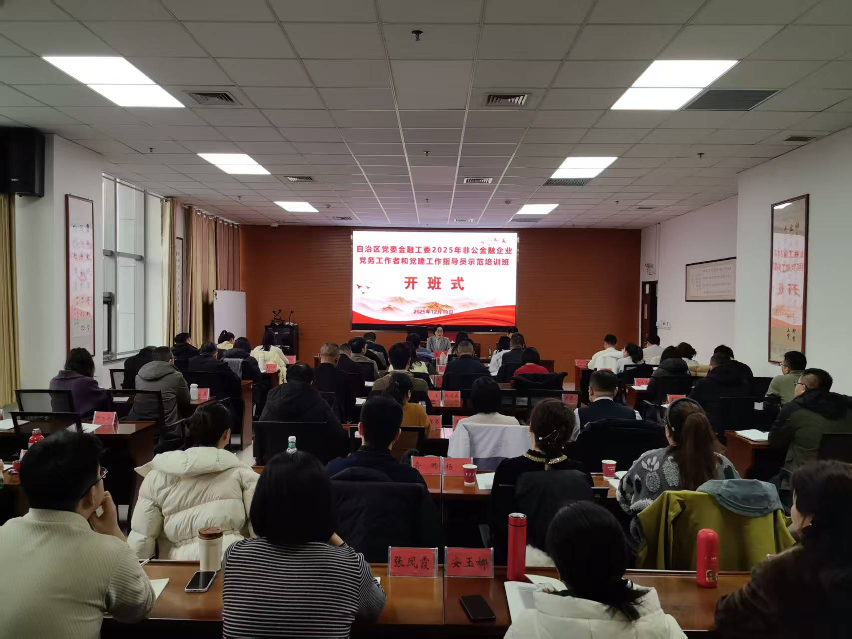 为全面提升全区非公金融领域党务工作者和党建工作指导员的政治素养与履职能力,进一步激发非公金融机构高质量发展内生动力,持续增强党在非公金融领域的号召力凝聚力影响力,12月10日至12日,自治区党委金融工委在自治区党校举办2025年非公金融机构党务工作者和党建工作指导员示范培训班,自治区新型金融机构党委所属各级党组织党务工作者及各市、县(区)财政局选派到非公金融机构中的党建工作指导员共计60余人参加培训。