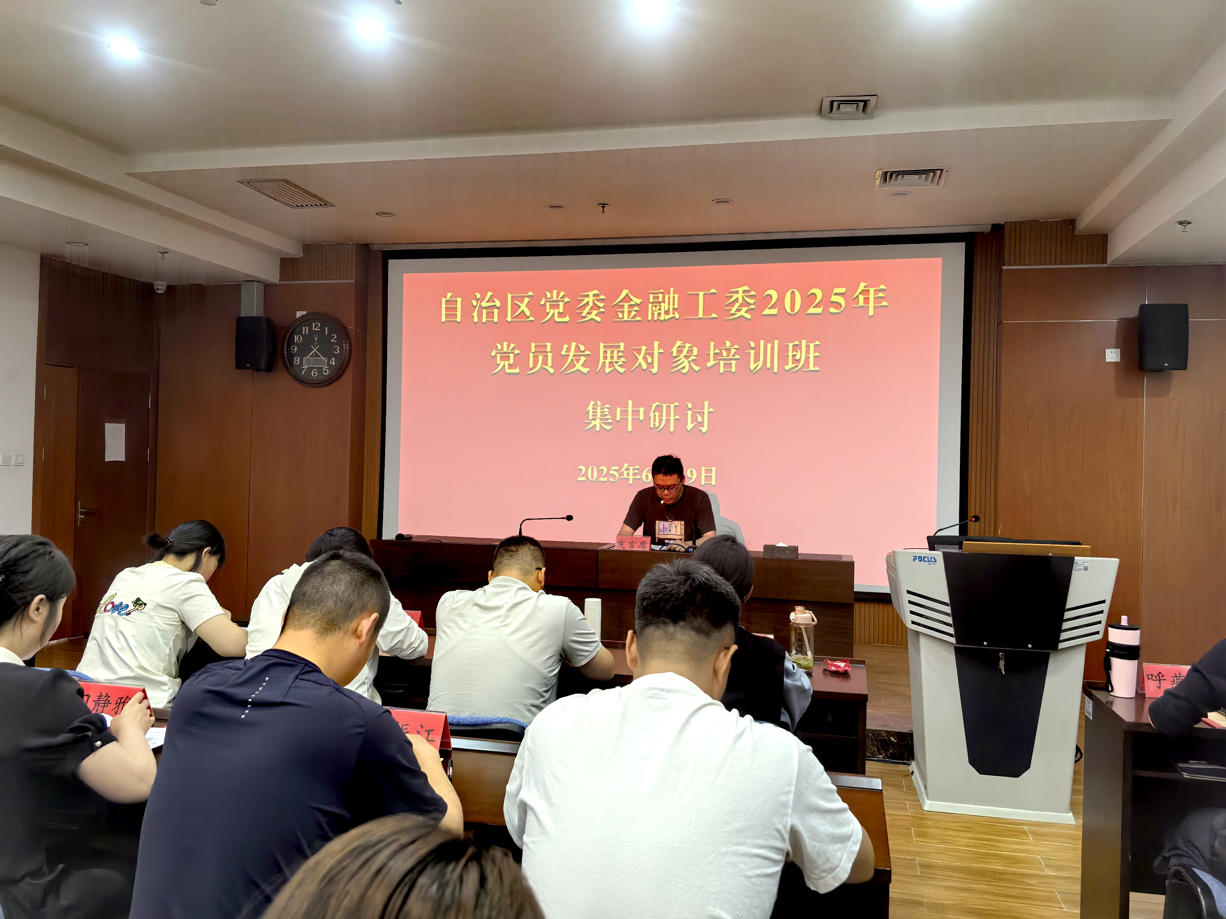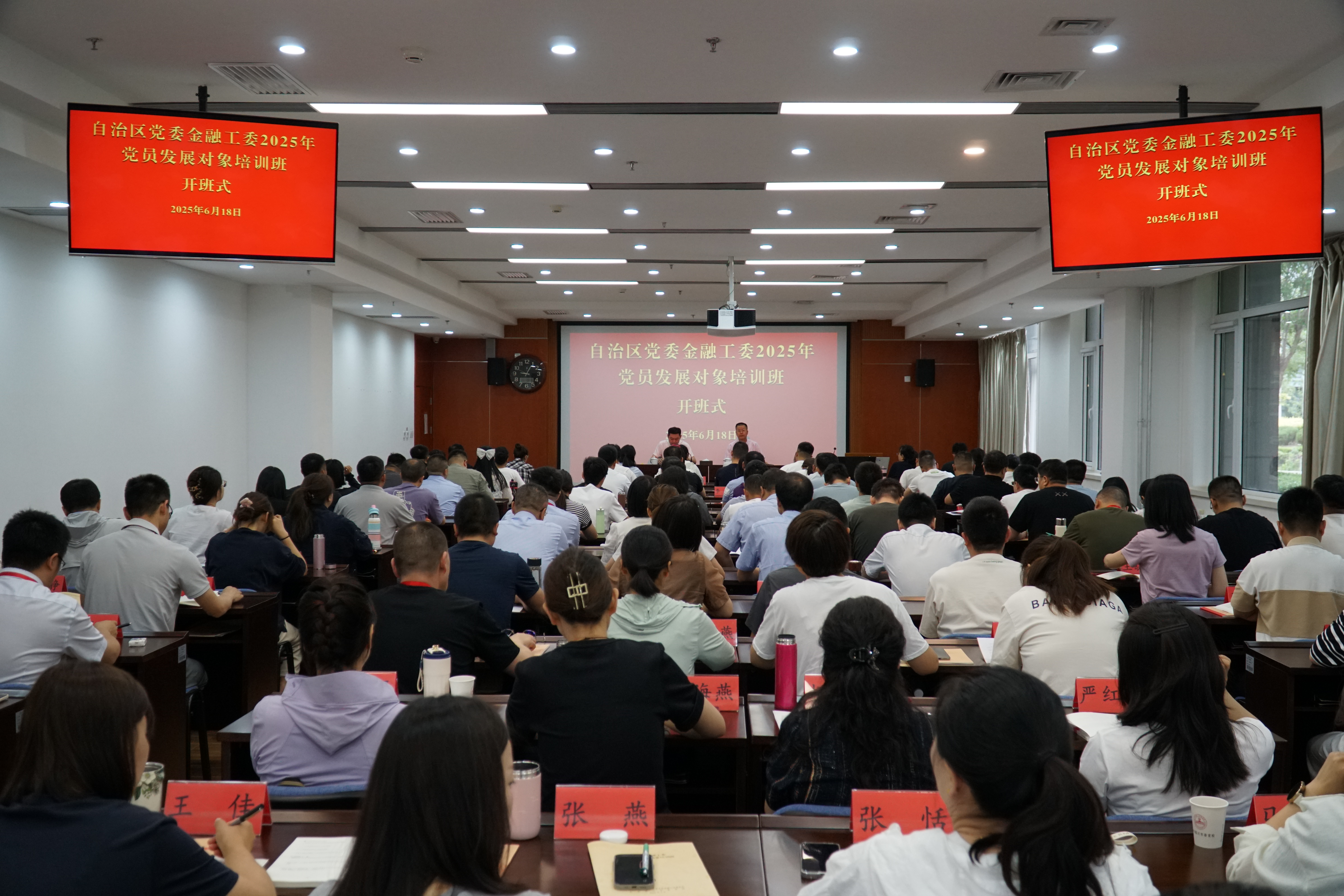 自治区党委金融工委专职副书记任文斌出席开班仪式并讲话,他指出,此次对党员发展对象进行集中培训,旨在通过深学细悟习近平新时代中国特色社会主义思想,特别是习近平总书记关于党的建设的重要思想,帮助党员发展对象进一步坚定理想信念,端正入党动机,加深对党的认识和理解,进一步筑牢信仰之基,补足精神之钙,提升履职能力,为成为一名合格的共产党员打下坚实基础。