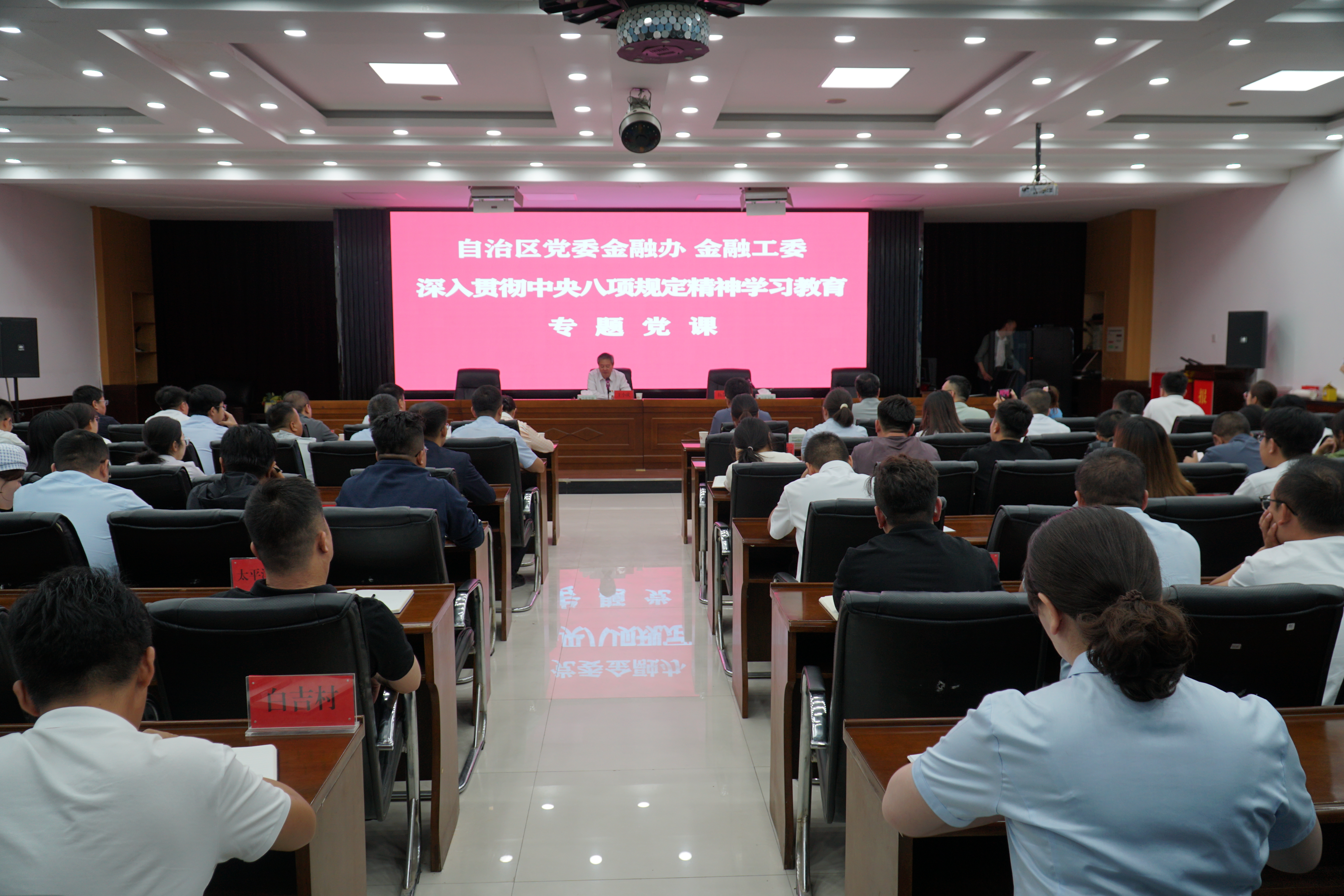 王小成强调,要将党的政治建设摆在首位,始终用习近平新时代中国特色社会主义思想凝心铸魂,把学习教育深度融入日常工作、常态抓在日常点滴。要深学细悟笃行习近平总书记关于加强党的作风建设的重要论述和中央八项规定及其实施细则精神,切实增强贯彻落实的政治自觉、思想自觉、行动自觉。要把学习收获转化为坚定的政治认同、正确的思想认同、深刻的理论认同、深切的情感认同,从思想上正本清源、固本培元。要严格按照党中央部署和自治区党委要求,坚持不懈抓好学习教育“学查改”,强化以案示警,以案为鉴、举一反三,时刻紧绷思想防线,坚决落实纪律要求。全体党员干部要以此次学习教育为契机,将政治能力建设贯穿金融工作全过程,用中央八项规定精神校准工作、言行坐标,更加心无旁骛地投身建设金融强国的伟大事业。